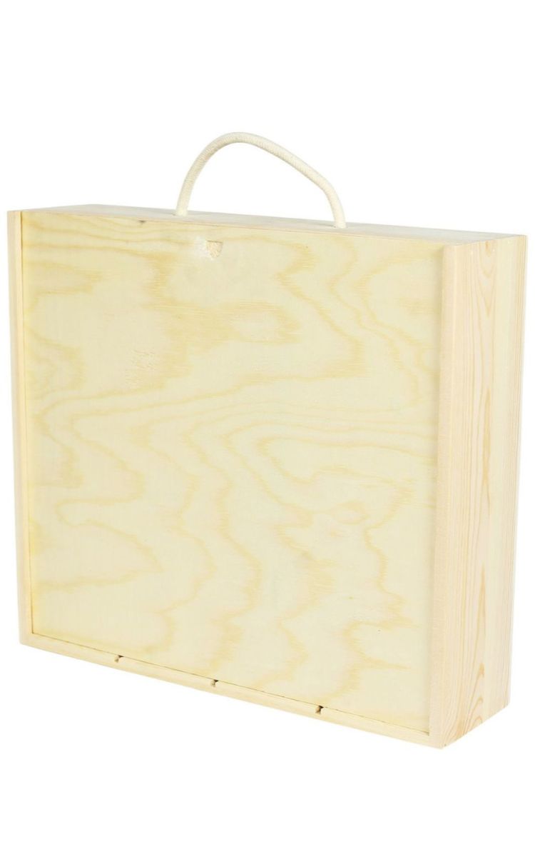 Four bottle wooden gift box for bottles. Made with FSC approved pine wood timber, that comes from sustainable sources only. Furnished with a ply wood base and sliding lid and sanded to a premium finish. Removable dividers and cotton rope carry handle make this wooden box for bottles, ideal for private and corporate gifting.