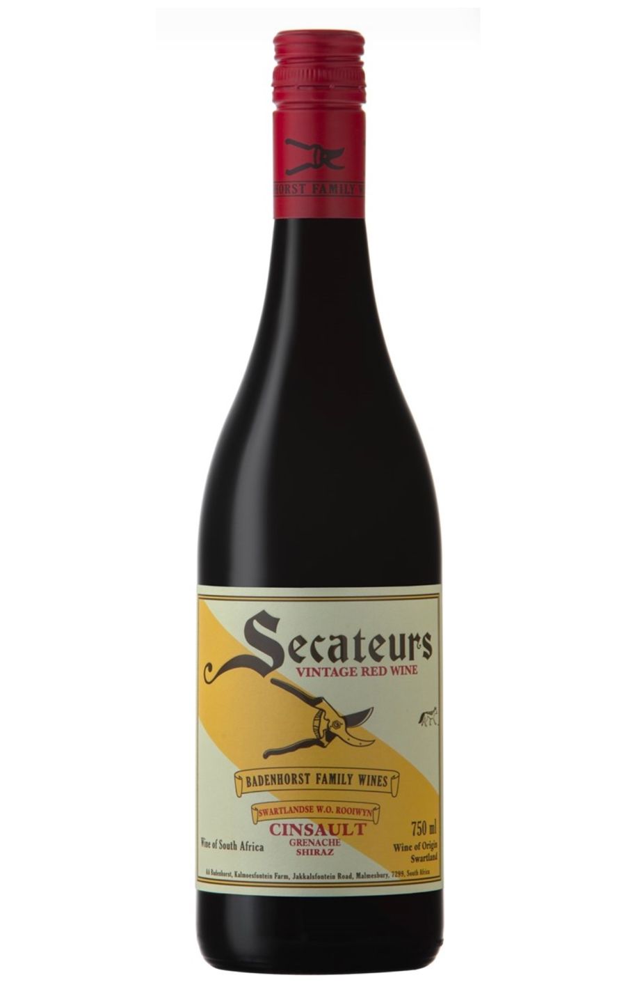 A.A. Badenhorst Secateurs Red Blend wine is a bold and complex South African blend that showcases the unique terroir of the Swartland region. This wine features a rich and deep red color, with aromas of dark fruits, spices, and earthy notes. On the palate, it offers a luscious and full-bodied experience, with flavors of ripe berries, plums, and hints of tobacco and cedar. The tannins are well-integrated, providing a smooth and velvety texture that lingers on the finish. This wine is perfect for pairing with hearty dishes like grilled meats, stews, and aged cheeses. A.A. Badenhorst Secateurs Red Blend is a standout wine that will impress both wine novices and connoisseurs alike.