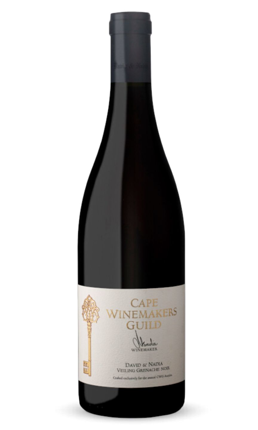 David & Nadia Cape Winemakers Guild Grenache Noir Veiling is a luxurious and sophisticated wine that showcases the best of South African winemaking. This Grenache Noir blend is produced in limited quantities and the grapes are sourced from the finest vineyards in the Swartland region. The wine is aged in French oak barrels, resulting in a complex and well-balanced flavor profile. Notes of dark cherry, plum, and spice combine with a velvety texture and seamless tannins. This wine is perfect for special occasions or for those who appreciate the finer things in life. David & Nadia Cape Winemakers Guild Grenache Noir Veiling is truly a treat for the senses.
