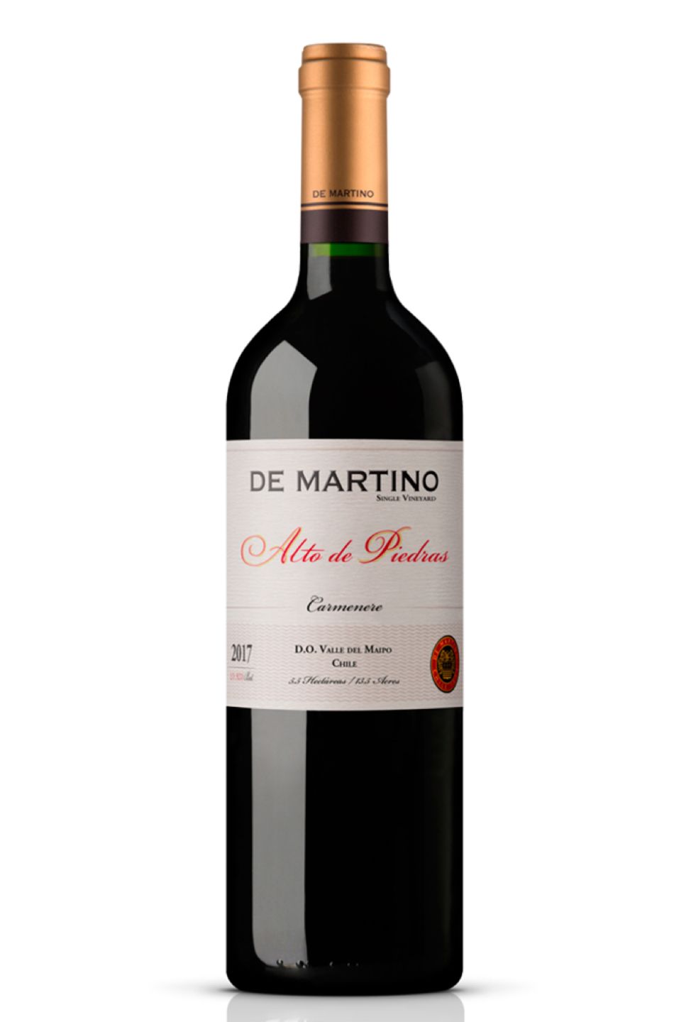 De Martino Single Vineyard Carmenere 'Alto de Piedras' is a deep and complex wine with a rich bouquet of blackcurrant, chocolate, and black pepper aromas, along with a subtle hint of tobacco. It is a full-bodied wine that possesses a smooth velvet texture with a long finish. This wine is made from 100% Carmenere grapes, which are grown in the unique terroir of the Maipo Valley. The deep soils of this region provide excellent drainage, which helps to produce grapes with intense flavors and a strong structure. De Martino Single Vineyard Carmenere 'Alto de Piedras' is a wine that beautifully embodies the terroir of its region, and it is the perfect choice for those who appreciate the complexity and depth of a premium Carmenere.
