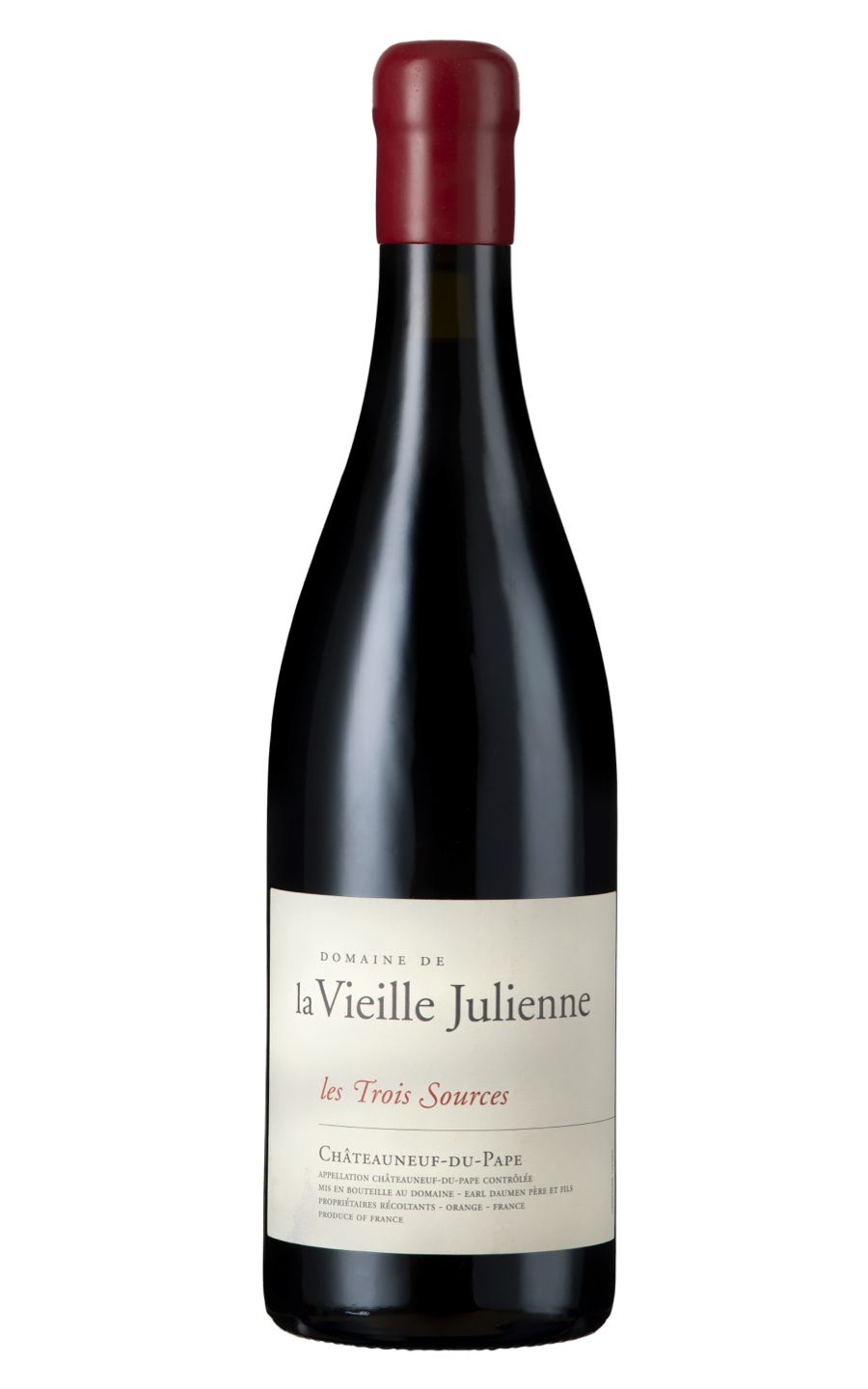 Domaine de la Vieille Julienne Châteauneuf-du-Pape Rouge Les Trois Sources is a rich and robust red wine that embodies the essence of the renowned Châteauneuf-du-Pape region in Southern France. This exceptional blend is crafted from a selection of Grenache, Syrah, and Mourvèdre grapes, carefully cultivated at the esteemed Domaine de la Vieille Julienne vineyard. The wine boasts a deep ruby hue with complex aromas of dark fruits, spices, and earthy undertones. On the palate, it offers an elegant balance of ripe berries, licorice, and hints of leather, culminating in a long, satisfying finish. Domaine de la Vieille Julienne Châteauneuf-du-Pape Rouge Les Trois Sources is a true gem for connoisseurs of fine wine.