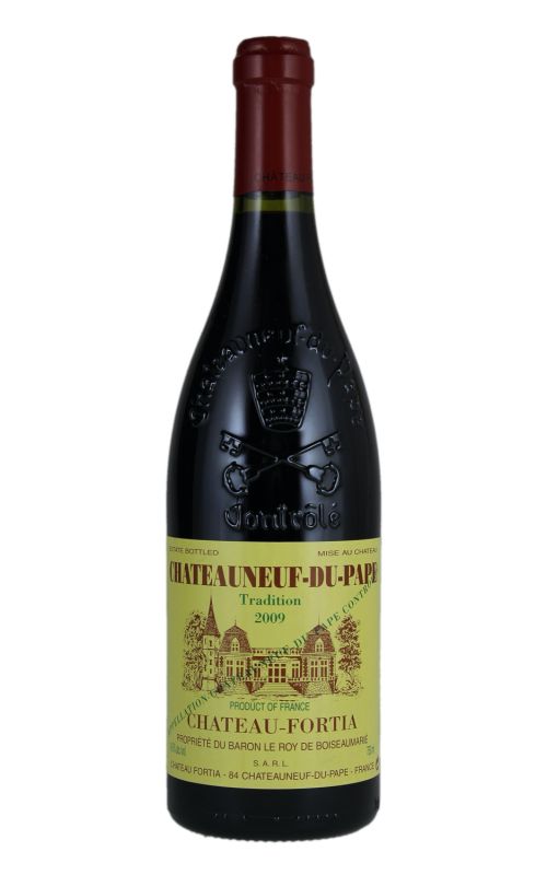 Château Fortia Châteauneuf-du-Pape Tradition is a classic and elegant French red wine produced in the Châteauneuf-du-Pape region of the Rhône Valley. It is made from a blend of Grenache, Syrah, Mourvèdre, and Cinsault grapes, which are carefully selected and handpicked from the estate vineyards. The wine is aged in oak barrels for a year, which gives it a deep ruby color and complex aromas of black fruits, spices, and earthy notes. On the palate, it is full-bodied and rich with a silky texture, balanced tannins, and a long finish. It pairs perfectly with roasted meats, game, and hard cheeses. Château Fortia Châteauneuf-du-Pape Tradition is a great choice for wine enthusiasts who appreciate the timeless elegance and sophistication of French wines.