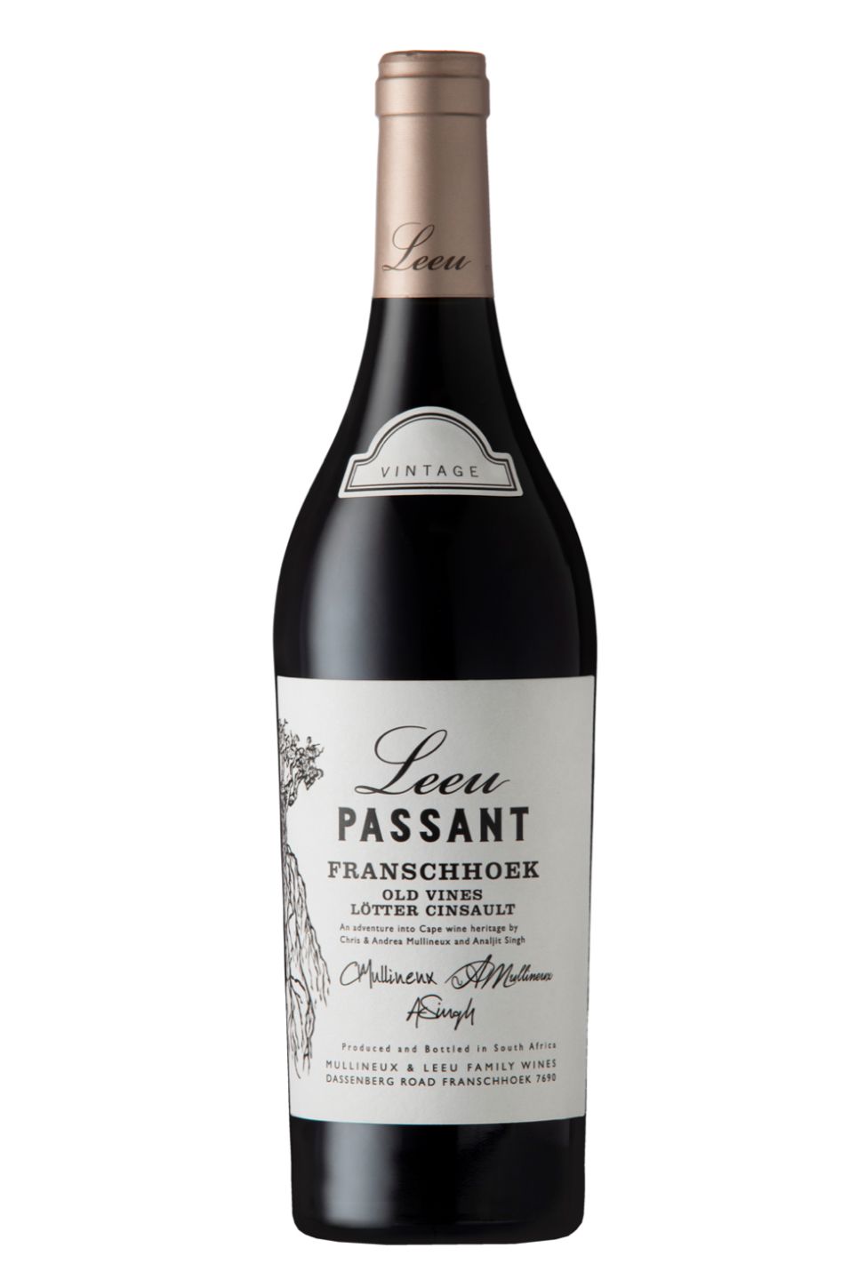 Leeu Passant Old Vines `Lötter` Franschhoek Cinsault is a premium wine made from old vines in South Africa's Franschhoek region. It is a single vineyard Cinsault that reflects the history and terroir of the area. The wine has a complex aroma with notes of red fruit, black pepper, and dark chocolate. On the palate, it is medium-bodied with a soft tannin structure and a long, elegant finish. This wine is a great representation of South African winemaking at its best. It pairs well with hearty meats and rich sauces, as well as savory vegetarian dishes. It is a must-try for any wine connoisseur.