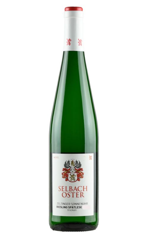 Weingut Selbach-Oster's Zeltinger Sonnenuhr Riesling Spätlese Trocken is a true expression of the Mosel region's unique terroir. The wine has a bright pale yellow color and a vibrant aroma with floral and citrus notes. Its taste is clean and refreshing, with a crisp acidity that balances the residual sugar, making it a dry wine despite being a Spätlese. The terroir-driven intensity of this Riesling stems from the volcanic slate soil of the vineyard, which imparts a mineral character to the wine. This wine is perfect for pairing with seafood, spicy dishes, and acidic dishes, or simply sipping on its own, showcasing the best of Mosel's winemaking tradition.