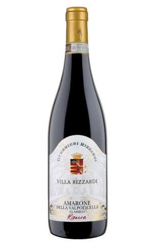 Villa Rizzardi Amarone della Valpolicella Classico from Guerrieri Rizzardi is a luxurious and rich red wine with a deep ruby colour. This wine is made from 75% Corvina, 20% Rondinella and 5% Molinara grapes, that are carefully harvested and left to dry for several months before being pressed. The result is a powerful wine with intense aromas of black cherry, black pepper, chocolate, and coffee on the nose. On the palate, this wine bursts with flavours of black cherry, blackberry, tobacco and vanilla, and has a long-lasting finish. Perfectly balanced and full-bodied, it pairs best with hearty meat dishes, game, and strong cheeses. Villa Rizzardi Amarone is a wine experience that will leave your taste buds wanting more.