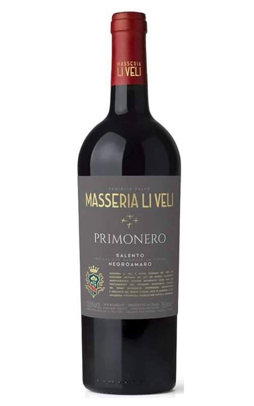Li Veli Primonero Salento IGT Negroamaro is a rich and complex red wine from the Puglia region in Southern Italy. Made with 100% Negroamaro grapes, this wine offers aromas of dark fruit, spice, and earth. On the palate, it is full-bodied with notes of black cherry, plum, and hints of tobacco. The tannins are smooth and well-integrated, providing a velvety mouthfeel and a long, satisfying finish. This wine pairs beautifully with grilled meats, hearty pasta dishes, and aged cheeses. Whether enjoyed on its own or as part of a meal, Li Veli Primonero Salento IGT Negroamaro is sure to impress with its depth and elegance.