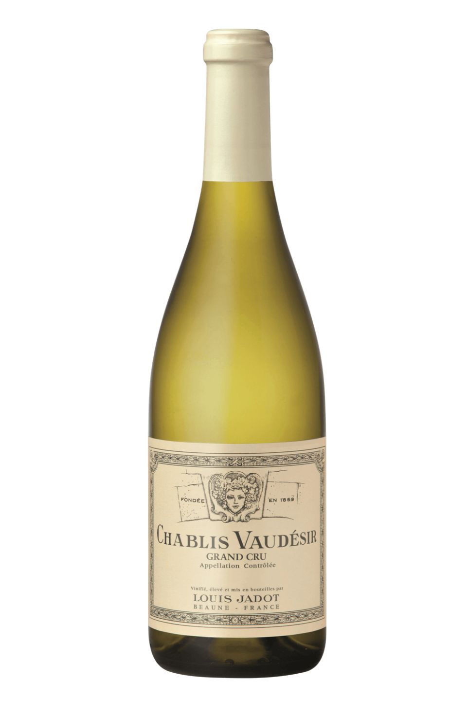 Louis Jadot Chablis Vaudesir Grand Cru is a French white wine, made from 100 percent Chardonnay grape variety. It is produced from the vineyards of Vaudesir, which is one of the seven Grand Cru sites in Chablis. This wine offers an intensely aromatic bouquet of yellow fruit, including apricot, peach, and exotic fruits, complemented by floral notes of linden and acacia. On the palate, it is rich and full-bodied, with a lovely minerality and a complex finish of spice and hazelnut. This exquisite wine pairs well with seafood, fish, white meat, and cheese. It's a perfect wine to serve with special dinners or to celebrate a special occasion.