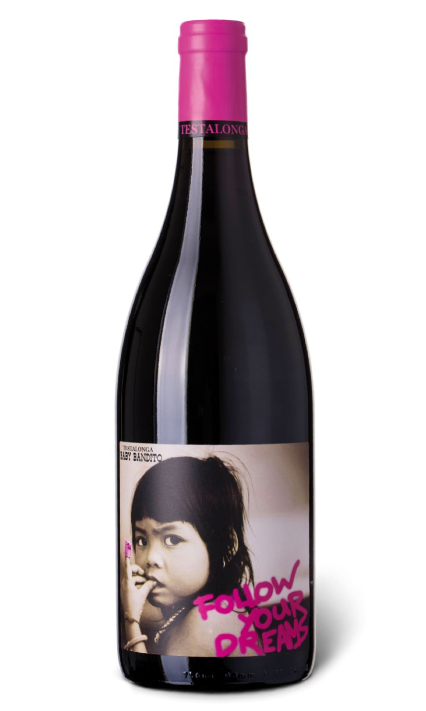Testalonga Baby Bandito Follow Your Dreams is an organic white wine made from 100% Chenin Blanc grapes grown in South Africa. It has a pale straw colour with a floral bouquet, and a fruity and zesty palate. Its taste is a mix of lime and citrus fruits with hints of green apple and pear. The wine is light-bodied, easy to drink and refreshing, making it perfect for any occasion. The name "Baby Bandito" is a reference to the 'outlaw' winemakers who create niche wines and follow their passions. This wine is an excellent example of that rebellious spirit, and it encourages drinkers to follow their dreams and passions.
