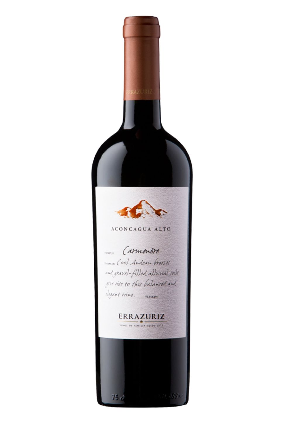 Errazuriz Aconcagua Alto Carmenère is a red wine hailing from the Aconcagua Valley in Chile. This rich, full-bodied wine boasts deep aromas of black cherries, plums, and hints of vanilla from the oak barrels it was aged in. On the palate, it is balanced and complex, with flavors of blackberries, cassis, and subtle notes of spice. This wine is made from the Carmenère grape, which is known for its ability to produce robust wines with a velvety texture. The Errazuriz winery is committed to sustainable agriculture, making this wine a great choice for those who value eco-friendly practices. Enjoy this wine with hearty meats or a classic Chilean dish such as empanadas.