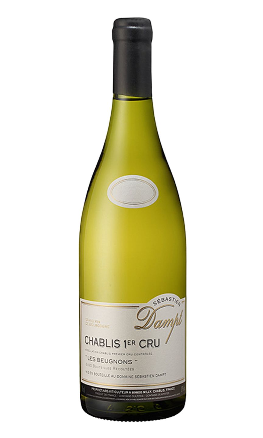Domaine Sebastien Dampt Chablis 1er Cru “Les Beugnons” is a premium white wine produced in the Chablis region of Burgundy, France. This premier cru wine is made from 100% Chardonnay grapes grown on a specific vineyard - Les Beugnons. The wine has a pale gold color with a subtle green hue and a delicate nose of citrus, apple, and mineral hints. On the palate, the wine is fresh and lively with hints of ripe fruit, combined with an intense mineral backbone and a long, smooth finish. Its well-balanced and elegant flavor profile make it a perfect pairing for a variety of seafood, shellfish, or creamy poultry dishes. This wine is an exemplary expression of Chablis's terroir and is a must-have for serious wine enthusiasts.