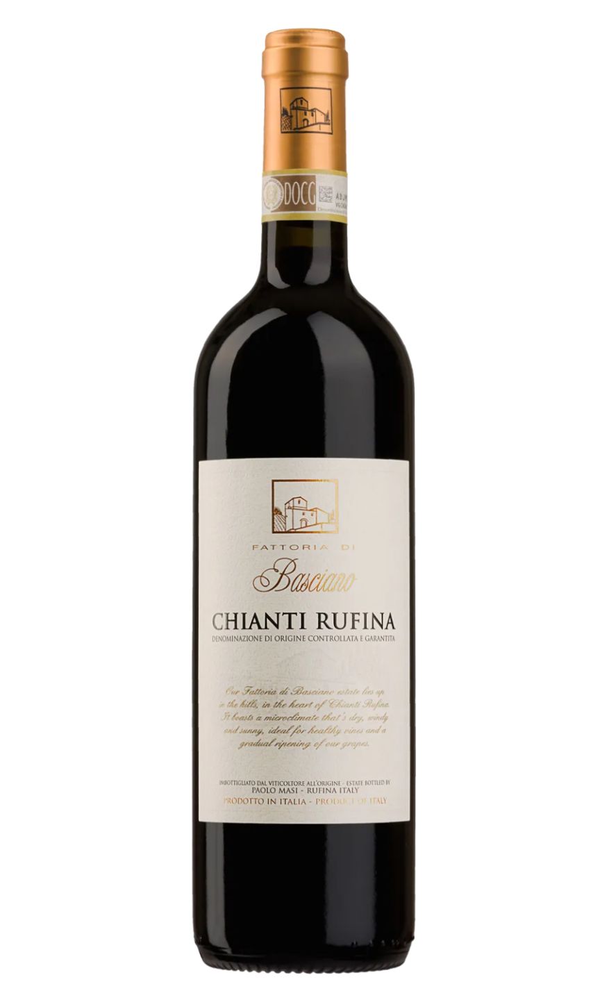 Fattoria di Basciano Chianti Rufina is a premium class wine made from top-notch grapes that are grown in Tuscany, Italy. The grapes are harvested and processed using traditional methods, which give the wine a distinct, rich, and earthy flavor. Produced from 100% Sangiovese grapes, this wine boasts a deep ruby red color with prominent aromas of red fruit and spices. On the palate, it is smooth and well-balanced with excellent acidity and a prolonged finish. The Fattoria di Basciano Chianti Rufina is a perfect accompaniment to classic Italian cuisine and roasted meats. It is a sophisticated wine that truly embodies the Tuscan spirit.