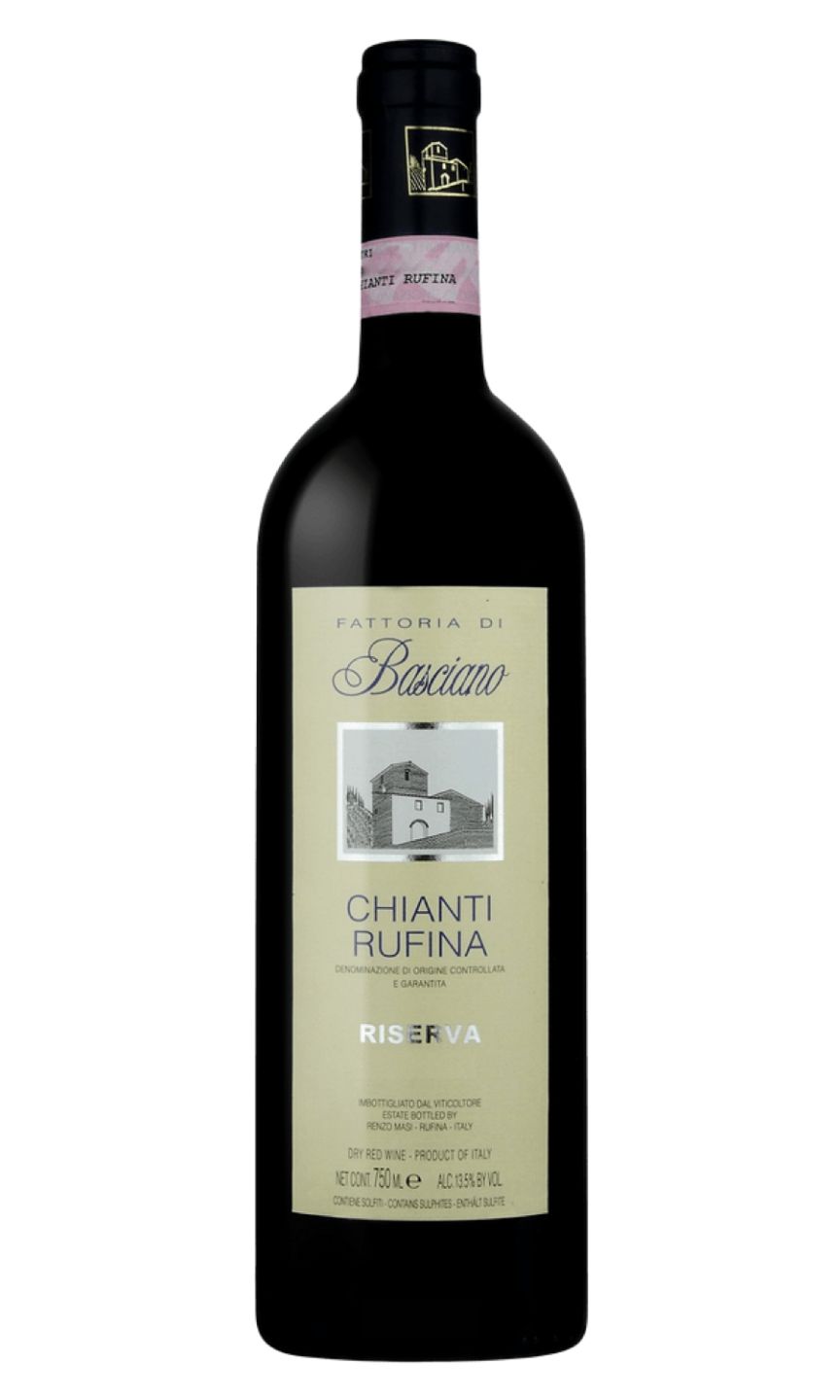 Fattoria di Basciano Chianti Rufina Riserva is a bold and vibrant red wine made in Tuscany, Italy. It is produced by carefully selecting the best Sangiovese grapes from the estate's vineyards. The wine undergoes a long maceration and aging process in oak barrels, which gives it a rich and complex flavor profile. The aromas and flavors include black cherry, plum, leather, and tobacco, with a hint of vanilla and spice on the finish. This wine has a medium body and a high acidity, making it an excellent pairing with hearty Italian dishes, grilled meats, and aged cheeses. It is a perfect representation of the quality and craftsmanship that goes into producing fine Chianti wines.