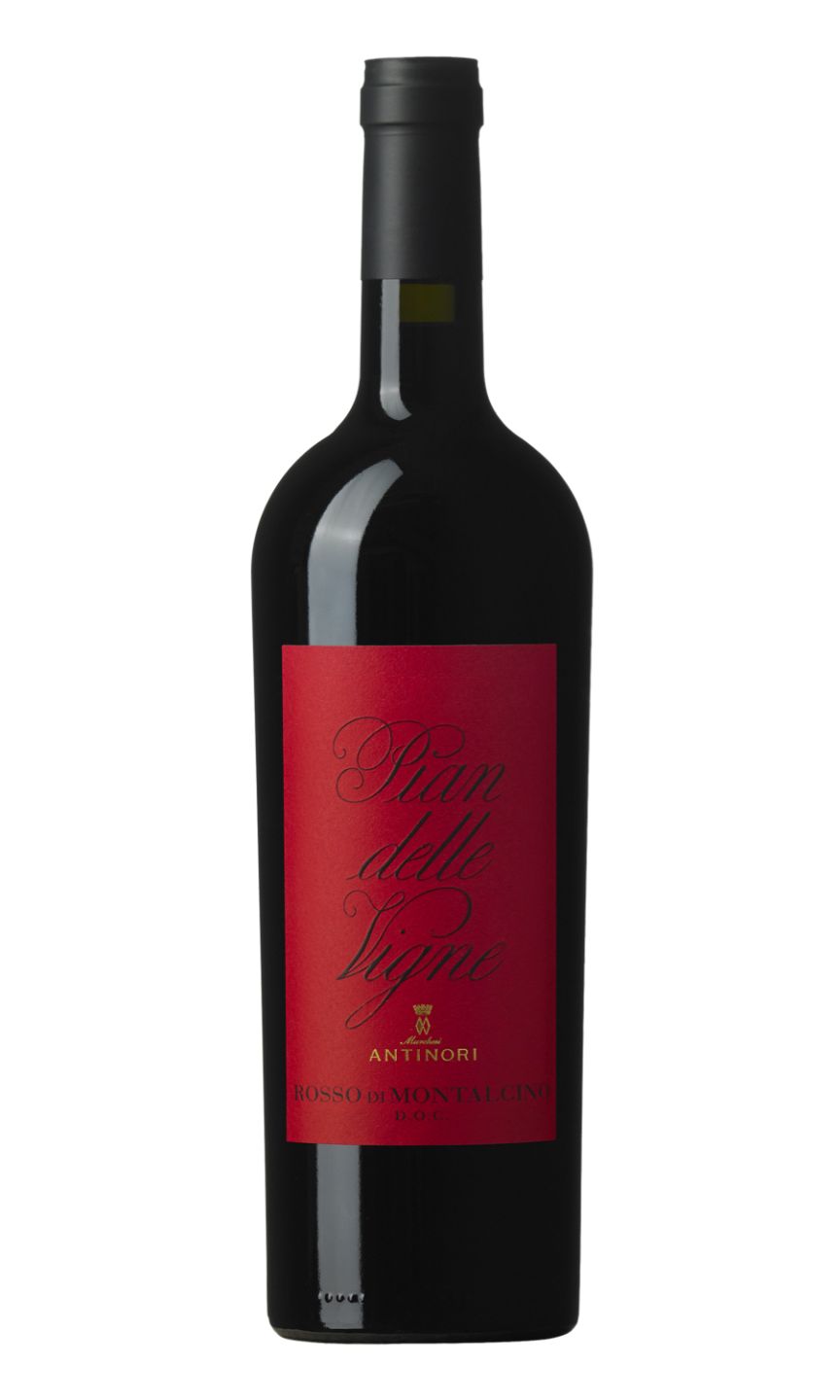 Pian delle Vigne’s Rosso di Montalcino offers to the eye a lively ruby red color. The nose is characterized by such ripe red fruit as plums and red currents, sustained by pleasurable sensations of dog roses and Mediterranean herbs, sage and origan. The palate is vigorous and fresh with silky tannins. The notes of ample red fruit, capable given fullness and persistence to the wine, are striking. The wine, in general, both on the nose and palate, is rather complex for a young bottle, with a drinking pleasure characterized by suppleness, freshness, and savor