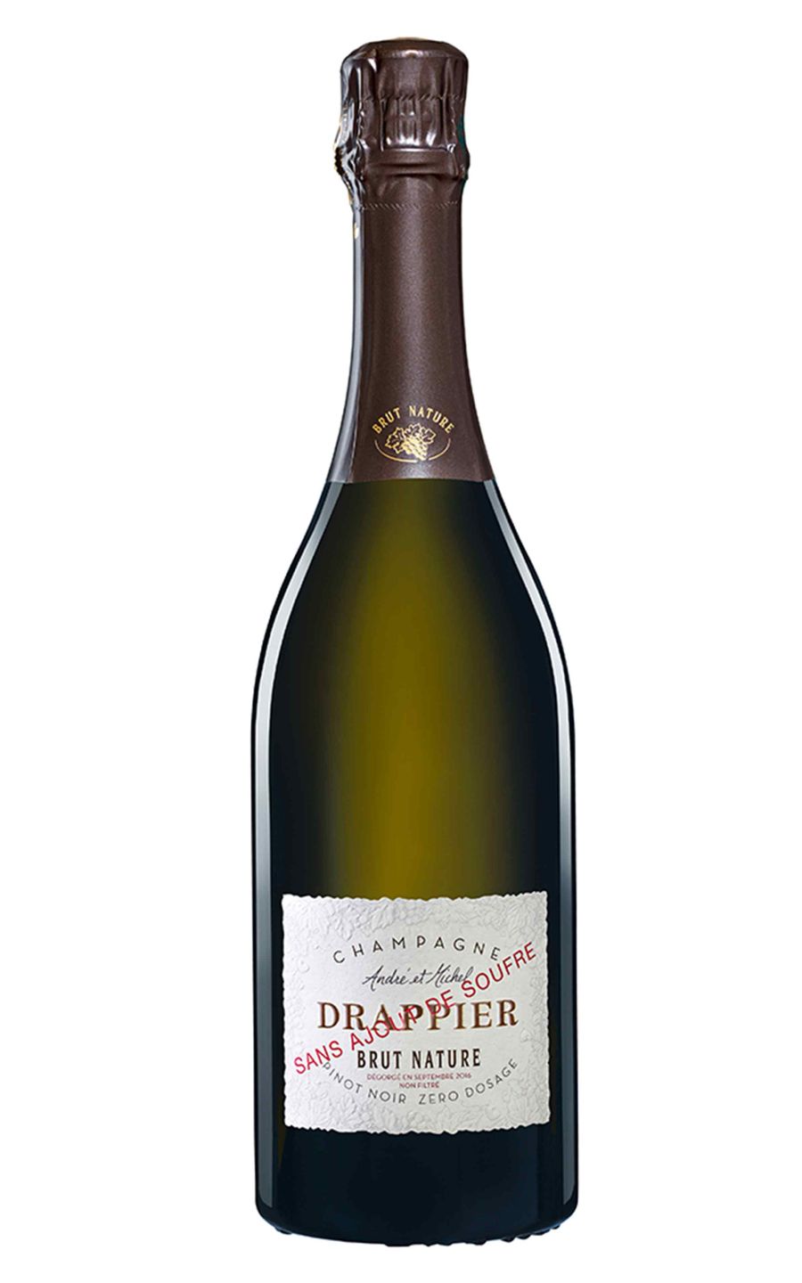Champagne Drappier Brut Nature Zéro Dosage is a crisp and refreshing sparkling wine that showcases the purity and elegance of the Champagne region. Made from a blend of Pinot Noir, Pinot Meunier, and Chardonnay grapes, this wine offers bright citrus and green apple notes, balanced by a subtle minerality and a touch of brioche. With zero added dosage, the natural acidity of the grapes shines through, creating a clean and vibrant palate. This wine is perfect for special occasions or as an aperitif, and pairs beautifully with seafood, light salads, and creamy cheeses. Champagne Drappier Brut Nature Zéro Dosage is a true expression of terroir and craftsmanship.